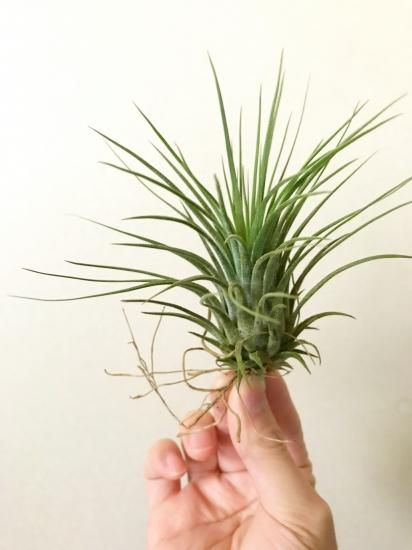 銀葉種で壺型種のチランジアで、葉は細く柔らかめ。葉の密に出し、美しい草姿をしておりオススメのチランジアです。