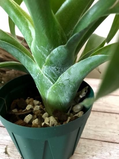 タンクブロメリアは植え替えて間もない商品があり多少ぐらつきがありますが発根処理をほどこして植えつけてあります。