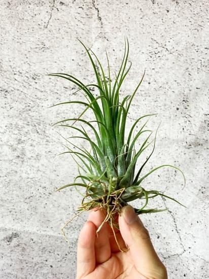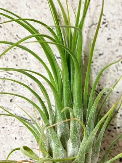 銀葉種で壺型種のチランジアで、葉は細く柔らかめ。葉の密に出し、美しい草姿をしておりオススメのチランジアです。