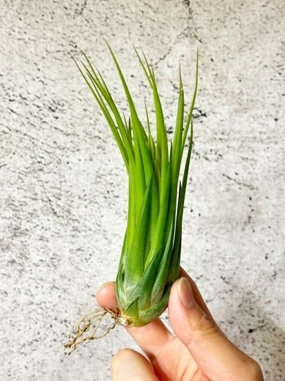 銀葉種で壺型種のチランジアで、葉は細く柔らかめ。葉の密に出し、美しい草姿をしておりオススメのチランジアです。