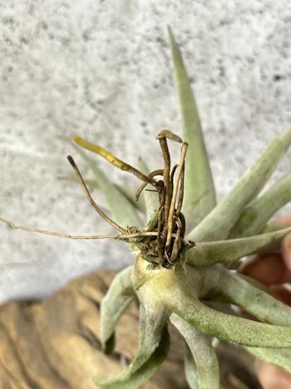 葉はとても肉厚で、紫がかったホワイトグレーの葉が他のチランジアにはない魅力を持っています。