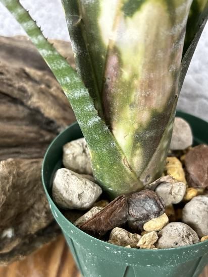 タンクブロメリアは植え替えて間もない商品があり多少ぐらつきがありますが発根処理をほどこして植えつけてあります。