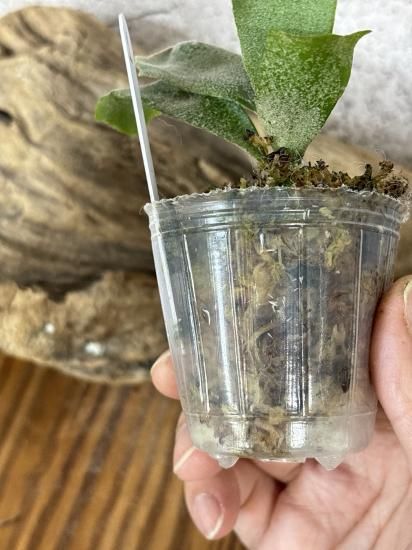 タンクブロメリアは植え替えて間もない商品があり多少ぐらつきがありますが発根処理をほどこして植えつけてあります。