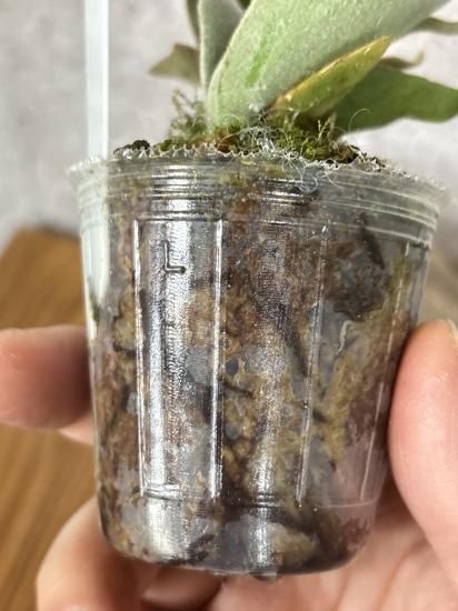 タンクブロメリアは植え替えて間もない商品があり多少ぐらつきがありますが発根処理をほどこして植えつけてあります。